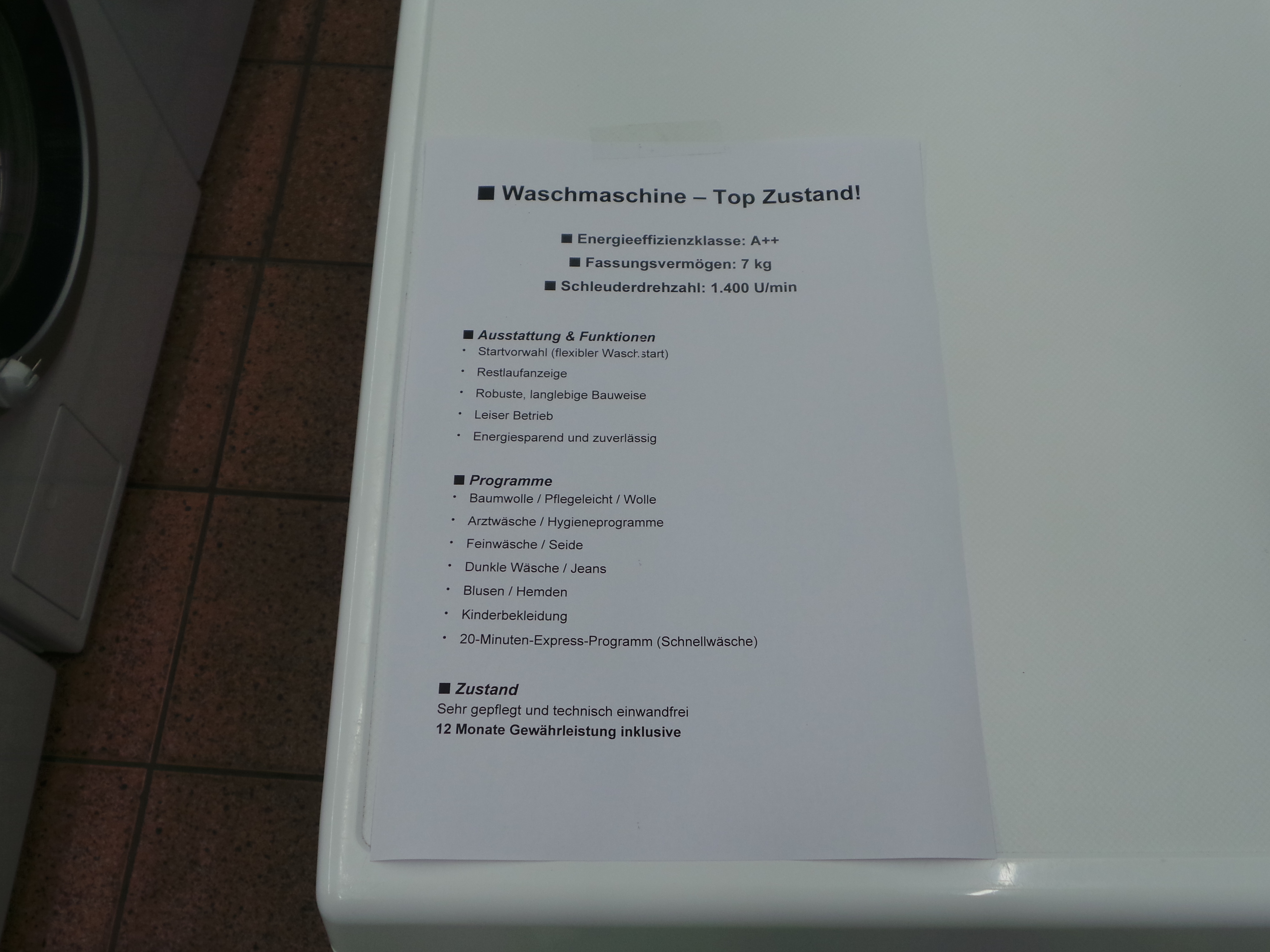 7,00kg,1400/Umin,Startvorwahl,Restlaufanzeige,